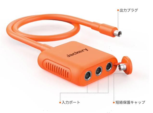 また、2枚以上のソーラーパネルでポータブル電源1000Proと2000Proへ充電する際、下記のようにSolarSaga アダプターをご利用ください。