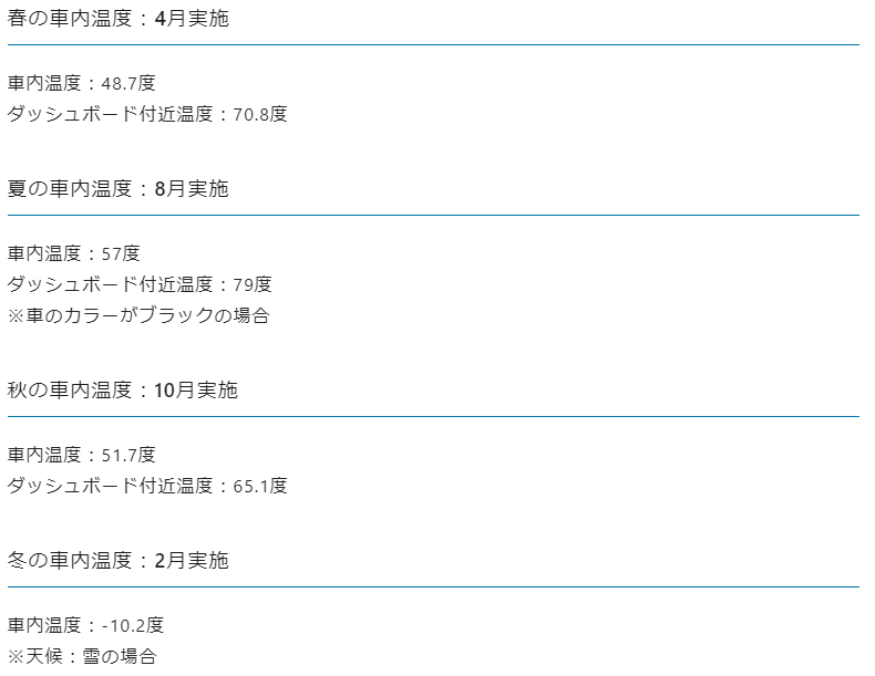 冬以外の季節でも車内温度は48度以上になるため、ポータブル電源を保管する環境としては適していません。移動中などエアコンを稼働させている場合は大丈夫ですが、車内放置は基本的には行わないように心がけましょう。