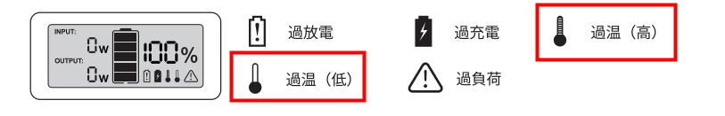 温度保護機能は環境温度が0℃以下~40℃以上になると入力停止になるため、入力停止後の保護条件解除は温度が回復してから1-2時間程度お待ちいただく必要があります。